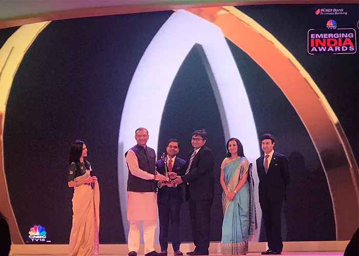 Recipient of the Emerging SME of the Year 2018 Award, presented by Mr. Jayant Sinha, Minister of State for Aviation & Ms. Shereen Bhan, Managing Editor of CNBC